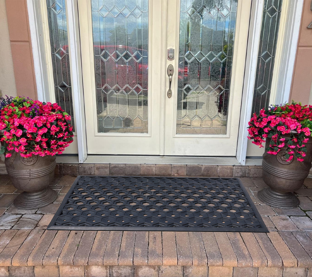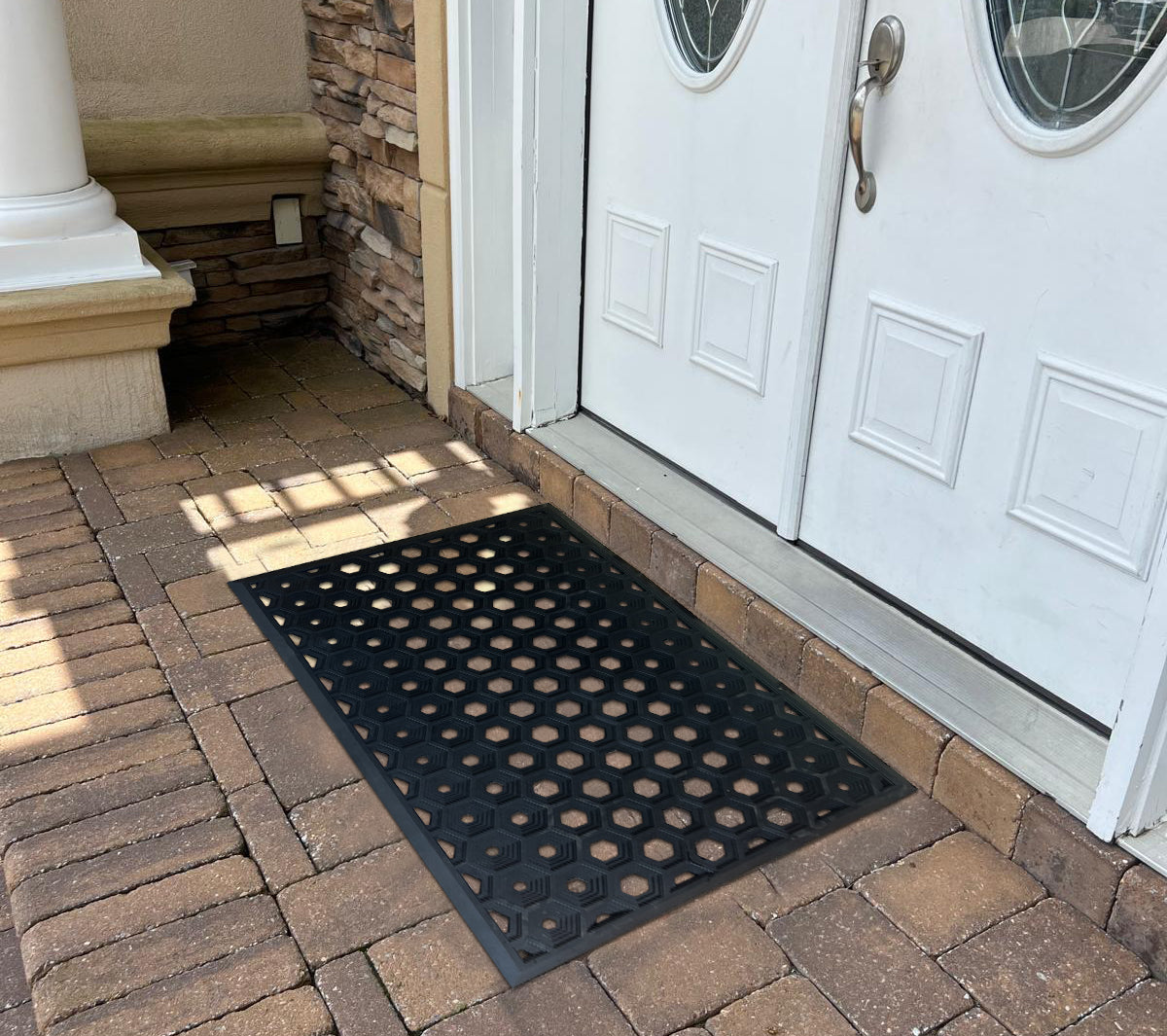 Upgrade your doorstep with our premium rubber mat designed to keep dirt out and safety in. The honeycomb drainage pattern traps debris and moisture, while the slip-resistant base offers stability even in wet conditions. Sized at 25"x39", 36"x60" it’s perfect for main doors, patios, or commercial entry points. Durable, weather-resistant, and easy to clean — a must-have for any high-traffic entrance.